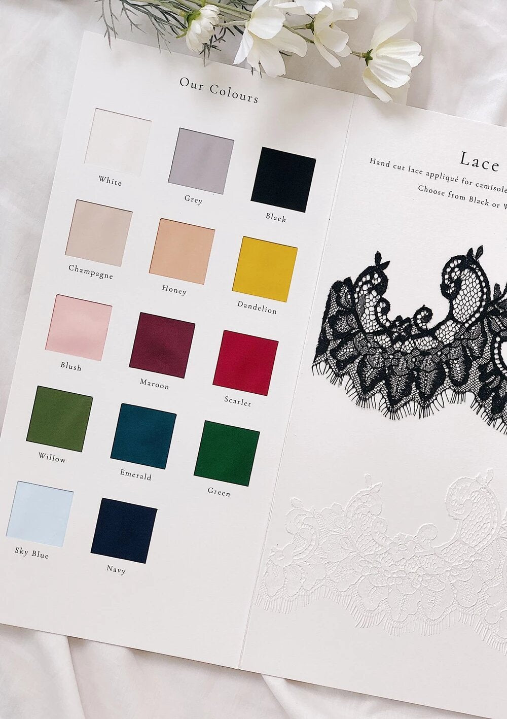 Choose from our range of silhouettes: Chemise, Camisole Set, Pyjama Set, Lily Pyjama Set and Shirtdress